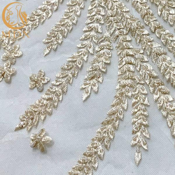 White Nigerian Wedding Dress Beaded Lace Fabric 91.44Cm Length Images |