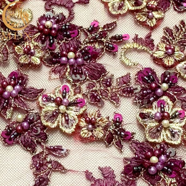 The Purple Handmade 3D Embroidery Lace Fabric Features: