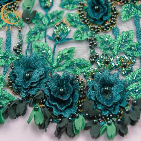 Delicate Green 3D Flowers Embroidery Lace Fabric For Wedding Gown Dress
