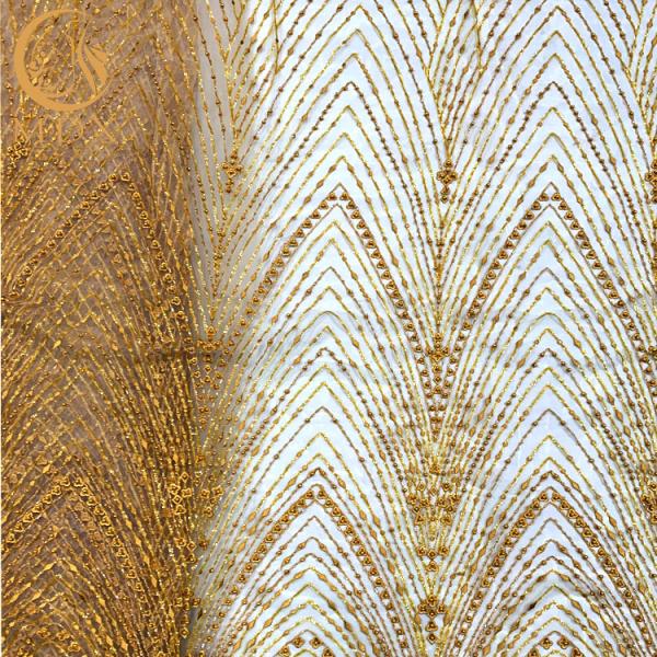 New Styles Golden Beads With Shiny Sequins Mesh Embroidered Wedding Lace Fabric