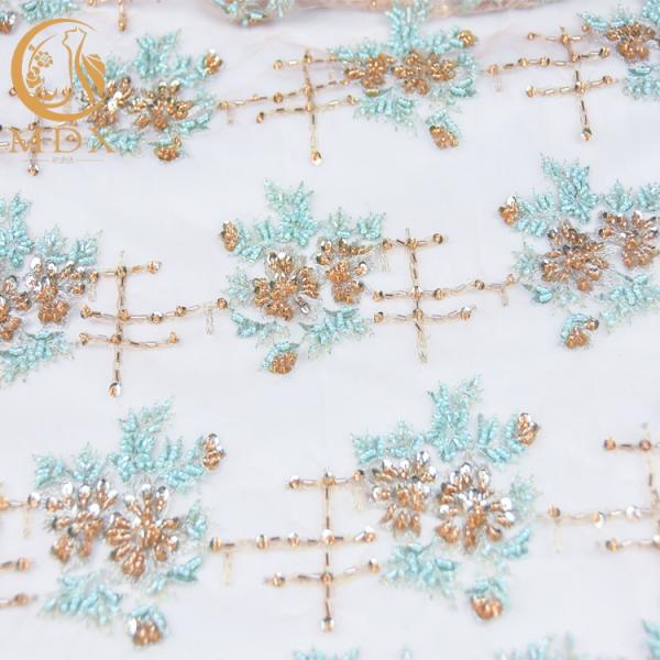 Popular Sequin Lace Fabric 140cm Width Handmade Green Lace Material Images |