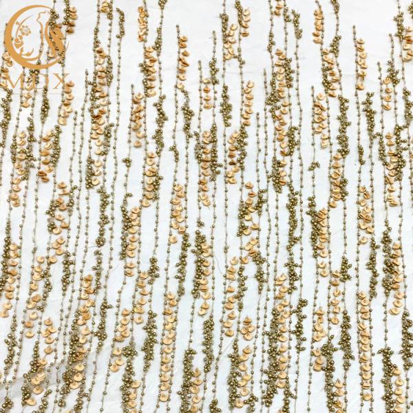 Wholesale Nylon Material Gold 3D Flower Beaded Bridal Embroidery Lace Fabric